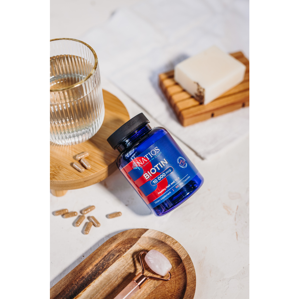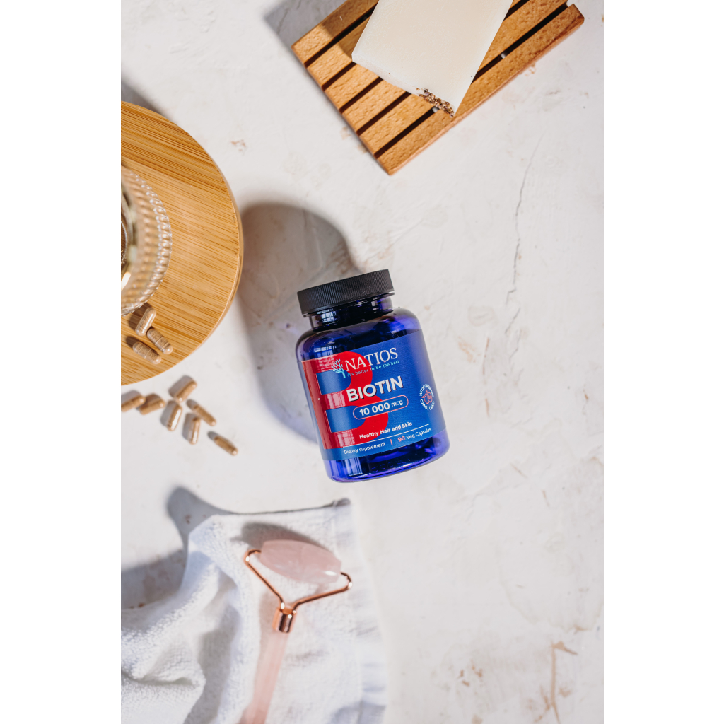 NATIOS Biotin, 10 000 mcg, Extra Strength, 90 veganských kapslí