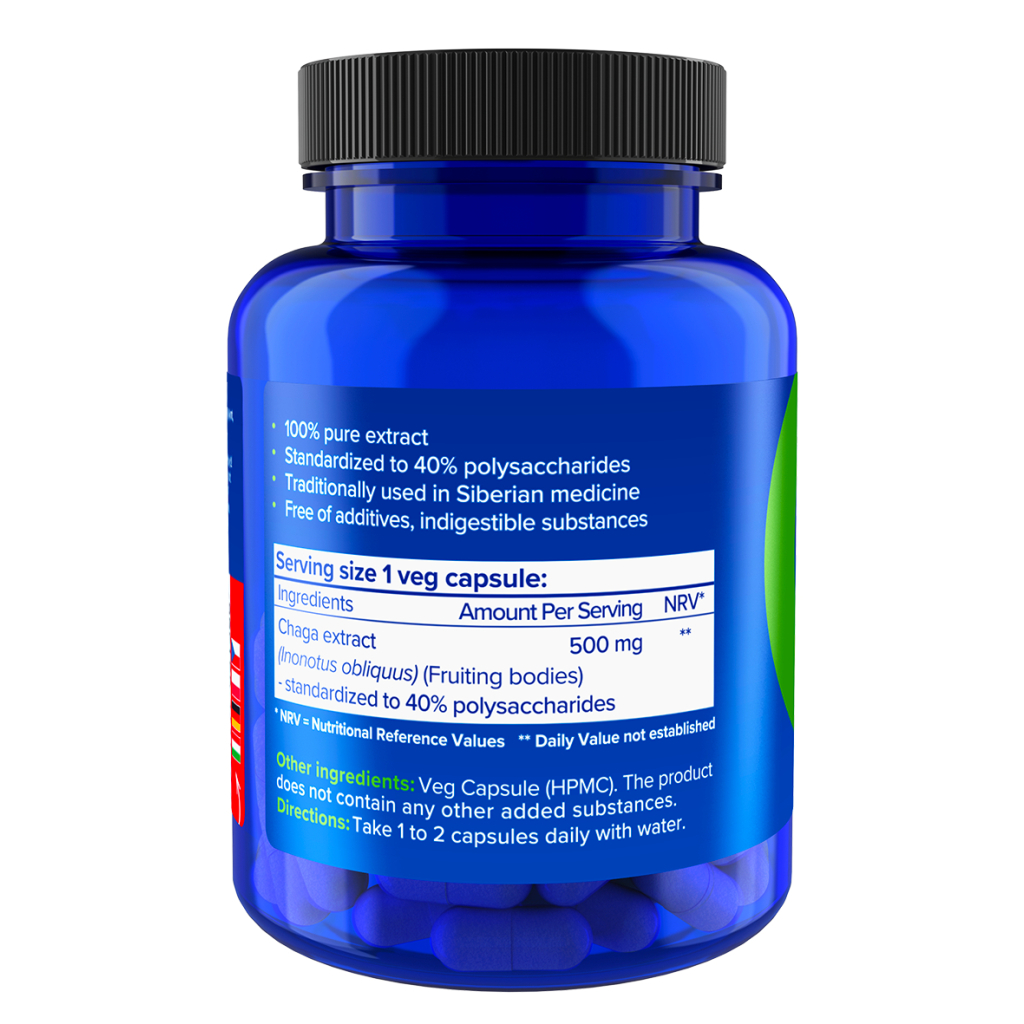 NATIOS Chaga Extract, 500 mg, 40% polysaccharides, 90 veganských kapslí