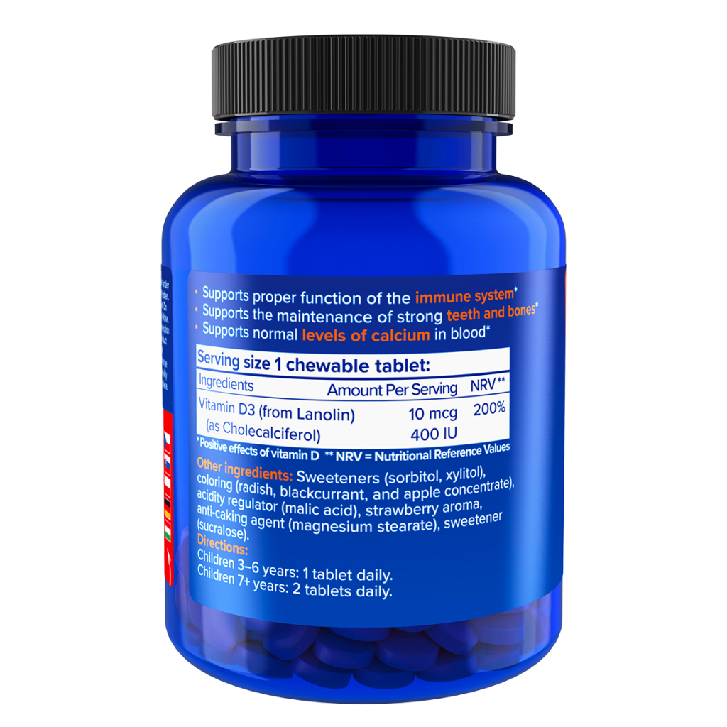 NATIOS Kids Vitamin D3, 400 IU, 120 jahodových cucacích tabletek