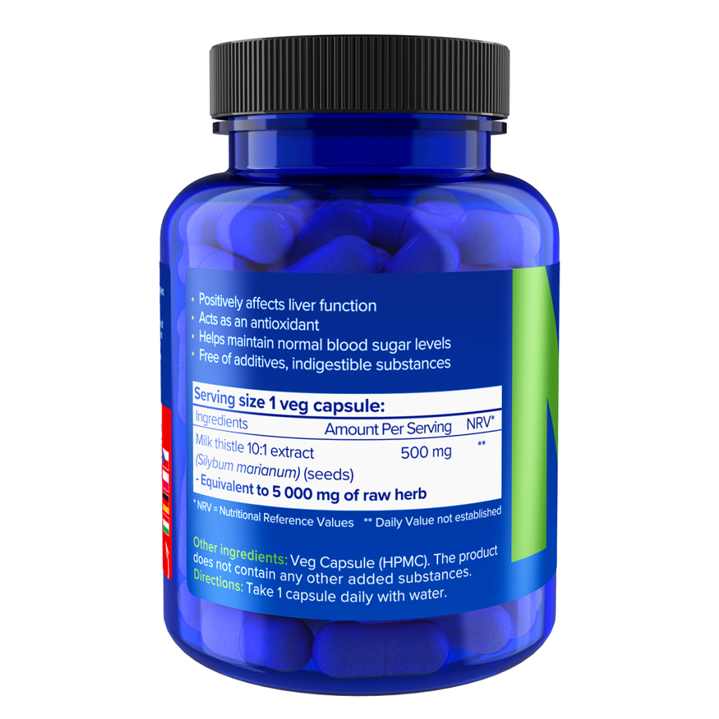 NATIOS Milk Thistle Extract, Ostropestřec, 5000 mg, Extra Strength, 90 veganských kapslí