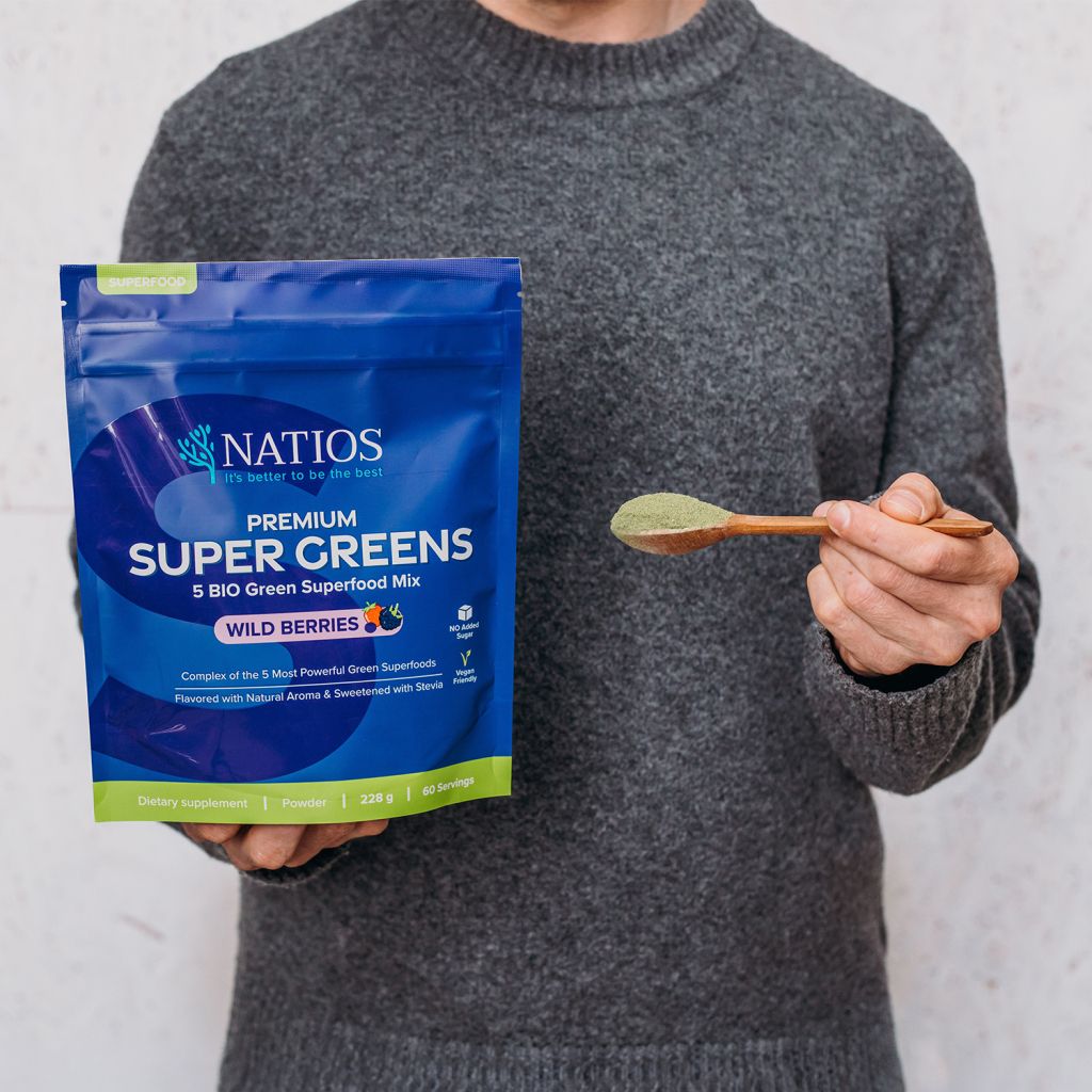 NATIOS Premium Super Greens, Lesní ovoce, 228 g